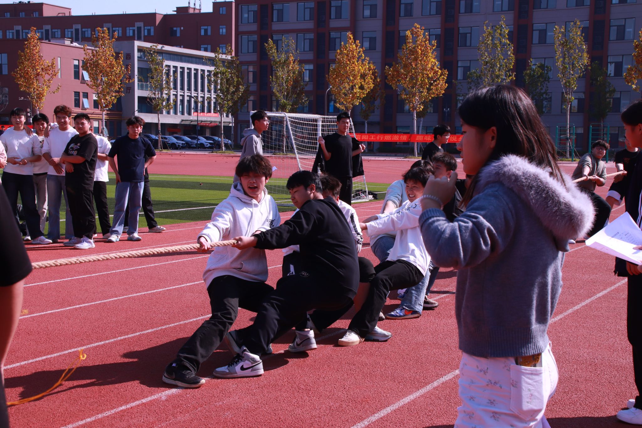 凝心聚力拔山河,奋勇争先展风采,智造青春势不可挡!2025年11月14日,信阳科太阳成集团tyc33455cc官网拔河比赛决赛在田径场上隆重举行,陈云杰书记以及全体辅导员亲临现场,为选手们加油助威。